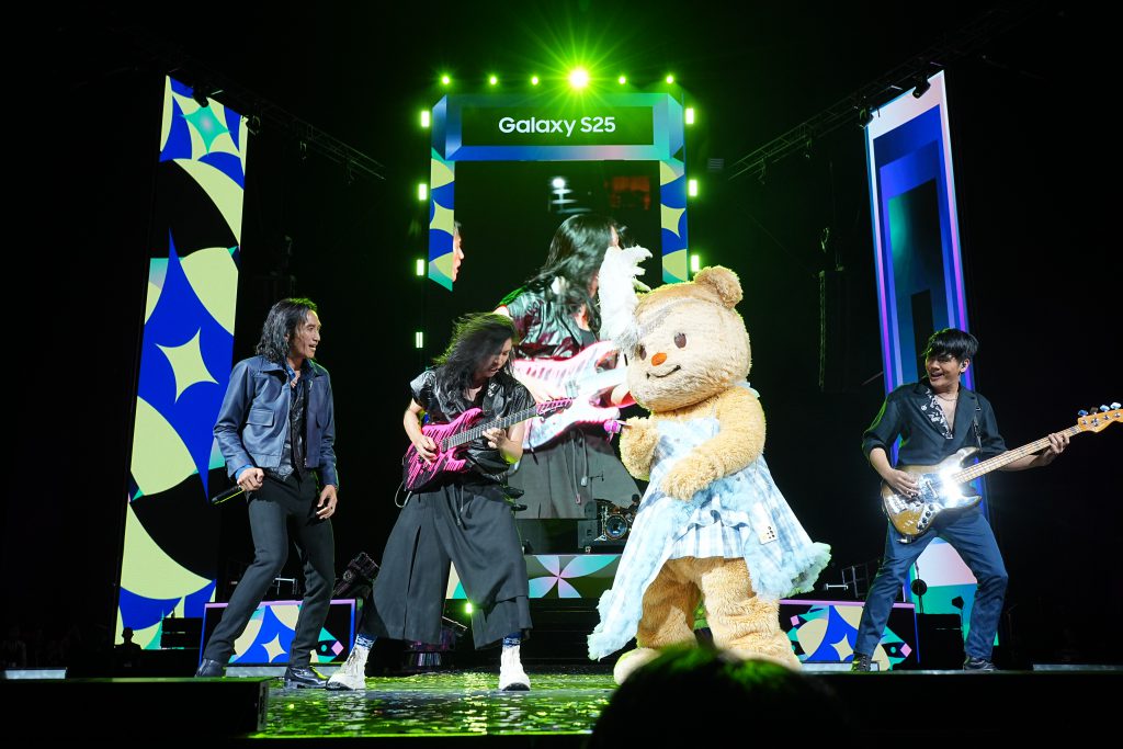 ฟินกันอย่างต่อเนื่องถึงช่วงค่ำกับคอนเสิร์ตสุดพิเศษที่ครีเอทขึ้นจากฝีมือผู้ช่วยส่วนตัวคนใหม่อย่าง Galaxy AI ที่มารับบทเป็นทั้งผู้ดำเนินรายการ คนคิดโชว์  และนับเป็นครั้งแรกของการใช้ AI เป็นไลน์ประสานเสียงร้องในโชว์สุดเซอร์ไพรส์จากเกิร์ลกรุ๊ป 3 สาว โบกี้ ไลออน, อิ้งค์ วรันธร และน้องเนย Butterbear ในเพลง ‘ผ้าเช็ดหน้า’ จนได้เป็นเวอร์ชันสุดคิ้วท์ที่ทำเอาอดยิ้มตามไม่ได้ แต่เซอร์ไพรส์ยังไม่หมดเพียงเท่านี้ เพราะน้องเนย Butterbear ลุกขึ้นมาจับไมค์คัฟเวอร์เป็น ศิริพร อำไพพงษ์ ร่วมฟีเจอริงกับ พี่ตูน บอดี้สแลม ในเพลง “คิดฮอด” ทำเอามัมหมีใจละลายกันเป็นแถว โดยเฉพาะช็อตที่น้องเนยโชว์ลีลากระโดดตัวโยก พร้อมส่ายพุงดุ๊กดิ๊กตามจังหวะดนตรี และปิดท้ายค่ำคืนด้วยความมันส์เร้าใจตามสไตล์บอดี้สแลม ส่งเพลงฮิตอย่าง “ยาพิษ” “งมงาย” “คนที่ถูกรัก”และอีกมากมายที่มาระเบิดเวที  Galaxy S25 | Here AI am Music Fest จนลุกเป็นไฟ สมกับการเปิดตัว  Galaxy S25 Series ครั้งแรกในไทยอย่างยิ่งใหญ่