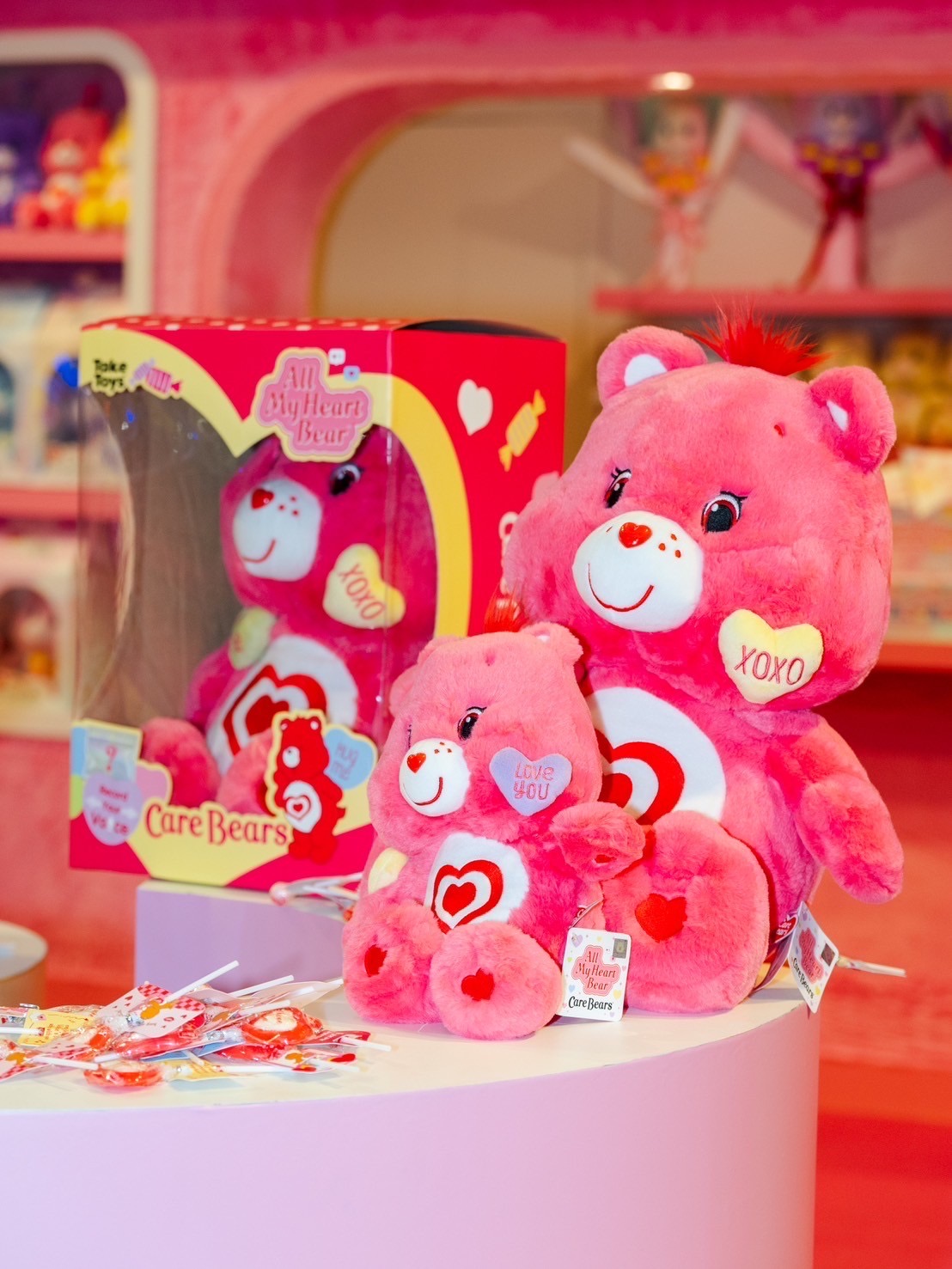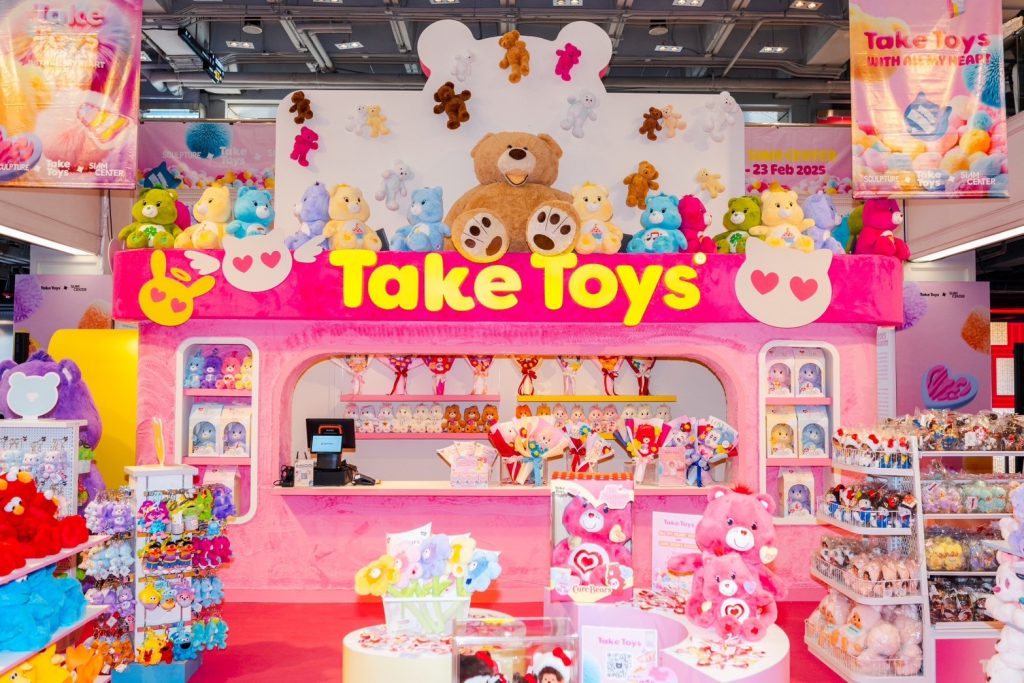 โดย Take Toys ยังยกขบวนสินค้าสุดพิเศษ อาทิ Care Bears, Monchhichi, Esther bunny และคาแรคเตอร์สุดฮิตอื่นๆอีกมากมาย มาให้ช้อปกันแบบจัดเต็ม พร้อมเปิดตัวสินค้า Exclusive Valentines Collection ที่นี่เป็นที่แรกอาทิเช่น Care Bears All My Heart รุ่นพิเศษ แบ่งปันความรู้สึกอันลึกซึ้งและหอมหวานในช่วงเทศกาลแห่งความรักผ่าน All My Heart Bear เจ้าหมีสีชมพูหวานแหววน่าเอ็นดูมาพร้อมเอกลักษณ์ลายปักหัวใจ และคำน่ารักๆ เช่น “จุ๊บๆ” “กอดหน่อย” “รักเธอ” หัวใจแม่เหล็กที่สามารถถอดติดได้ พิเศษเฉพาะประเทศไทย สามารถอัดเสียงได้ ไม่ว่าจะบอกรักใครก็ไม่ต้องเขิน ให้หมี All my heart bear เป็นของขวัญแทนการบอกความในใจได้เลย, ดอกไม้ Care Bears Bloom เปลี่ยนการให้ดอกไม้ให้กลายเป็นสิ่งที่คงอยู่ตลอดไป กับดอกไม้สุดนุ่มฟู น่ารัก คอลเลคชั่นนี้มีให้เลือก 5 คาแรคเตอร์สุดฮิต ได้แก่ Love-a-lot / Grumpy / Share Bear / Funshine/ Friend Bear มาพร้อมดีเทลลายปักสัญลักษณ์ของคาแรคเตอร์ต่างๆ มาอยู่บนกลีบ และกล่องแบบ Ready to gift! และ Monchhichi x Hello Kitty Collectionคอลเลคชั่นพิเศษฉลองครบรอบ 50 ปี ไม่ต้องตามหาอีกต่อไป มีพร้อมขายแบบไม่ต้องรอที่ Take Toys Drop แรกมีสินค้า 4 แบบ ทั้ง ตุ๊กตาและพวงกุญแจ