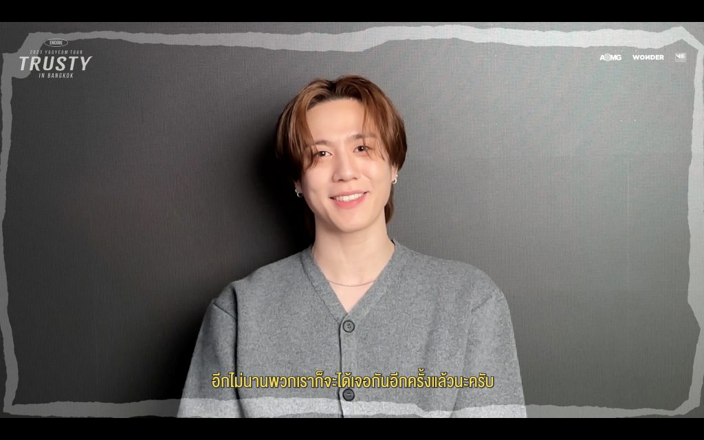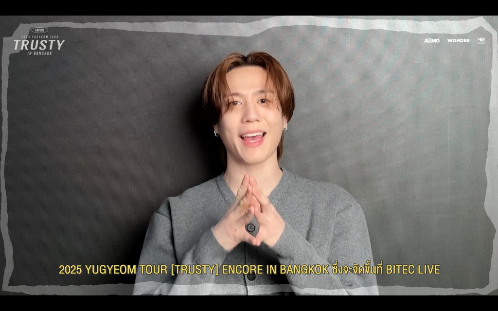 ก่อนพบกันตามนัดหมาย เจ้าตัวอ้อนผ่านคลิปวิดีโอมาอีกรอบ “อากาเซ่ชาวไทย สวัสดีครับ ยูคยอมครับ อีกไม่นานพวกเราก็จะได้เจอกันอีกครั้งแล้วนะครับ ตั้งตารอกันอยู่หรือเปล่าครับ ตอนนี้ผมกำลังเตรียมการแสดงที่เท่กว่าของปีที่แล้วอีกนะครับ อยากให้อากาเซ่มางาน 2025 YUGYEOM TOUR [TRUSTY] ENCORE IN BANGKOK ซึ่งจะจัดขึ้นที่ BITEC LIVE มาสนุกกันให้เต็มที่และเต้นกันให้สุดเหวี่ยงไปเลยนะครับ จะเป็นค่ำคืนที่ไม่มีวันลืมอย่างแน่นอนครับ ห้ามพลาดเด็ดขาดเลยนะครับ เข้าใจใช่ไหมครับ แล้วเจอกันที่กรุงเทพฯ ในวันที่ 15 มีนาคมนี้นะครับ รอเสิร์ฟทุกคนอยู่นะครับ” ชมคลิปได้ทาง