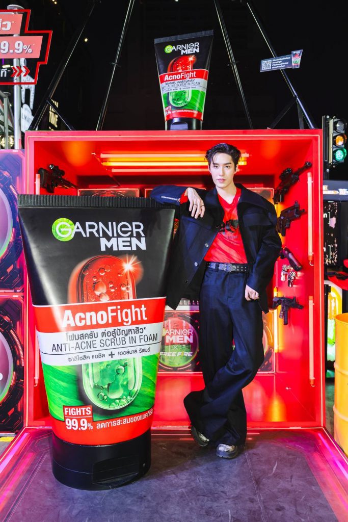ต่อ-ธนภพ ลีรัตนขจร Garnier Men Spokesperson ตบเท้าเข้าร่วมงาน Garnier Men AcnoFight Acne Free Zone พร้อมแชร์ไอเทมน็อคเกมสิว Garnier Men AcnoFight โฟมล้างหน้าเนื้อสครับที่มีประสิทธิภาพช่วยต่อสู้กับฝุ่น มลภาวะ สิ่งสกปรก ความมันส่วนเกิน และแบคทีเรียที่ทำให้เกิดสิวถึง 99.99%* พร้อมรับชมแมตช์พิเศษจาก 6 โปรเพลเยอร์ชั้นนำของเมืองไทย ร่วมประเดิมสมรภูมิใหม่ในเกม Free Fire ที่มีชื่อว่า AcnoFight Battleground presented by Garnier Men กลางลานสยามสแควร์ Block I ในวันที่ 1 มีนาคม 2568