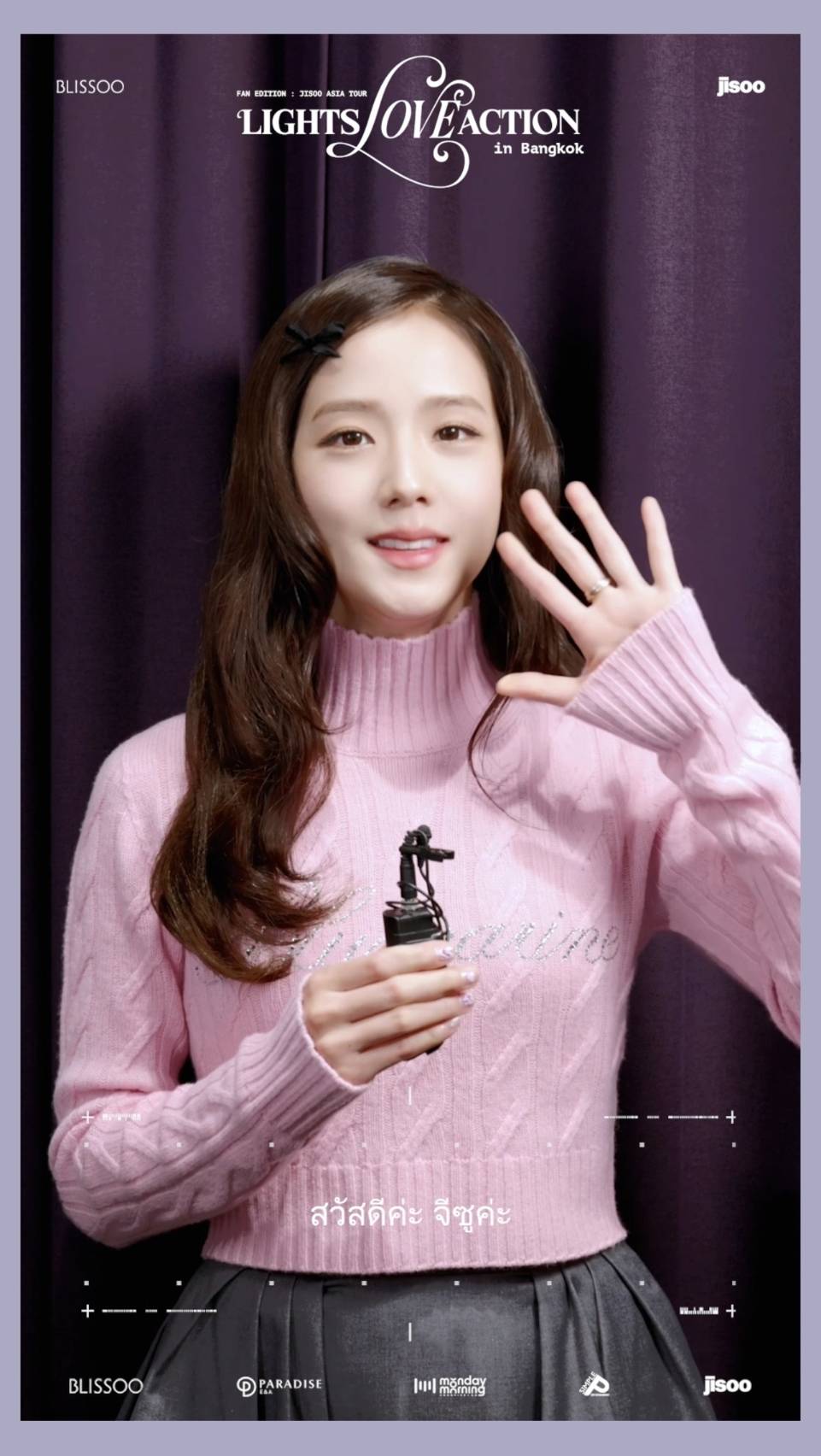 “สวัสดีค่ะ จีซูค่ะ ในที่สุดก็ได้กลับมาพบกับทุกคนด้วยอัลบั้มโซโล่ (AMORTAGE) แล้วค่ะ ให้สมกับชื่ออัลบั้ม (AMORTAGE) ที่หมายถึงภาพวาดสเก็ตช์จากการรวบรวมชิ้นส่วนความรักมารวมกัน ฉันเลยจะไปร่วมสร้างความทรงจำกับ BLINK แต่ละประเทศ อยากให้ทุกคนตั้งตารอกันด้วยนะคะ แล้วเจอกันในงาน 2025 JISOO ASIA TOUR: LIGHTS , LOVE , ACTION! นะคะ”