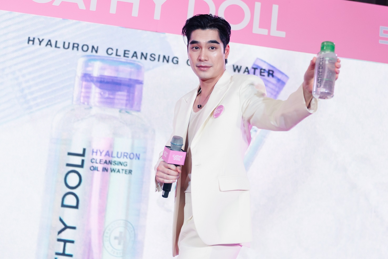 จากนั้นตามด้วยเหล่าพรีเซนเตอร์ของ Cathy Doll มาร่วมสร้างสีสันและพูดคุยถึงผลิตภัณฑ์ที่ตนเองชื่นชอบ เริ่มต้นด้วย เอม – สรรเพชญ์ คุณากร ที่มาแนะนำขั้นตอนการดูแลผิวหน้าอย่างหมดจดด้วย CATHY DOLL CLEANSING & CLEANSER SERIES ผลิตภัณฑ์ทำความสะอาดผิวหน้าที่อ่อนโยนแต่ทรงประสิทธิภาพ ที่จะช่วยให้ผิวสะอาดใส ไร้สิ่งตกค้าง