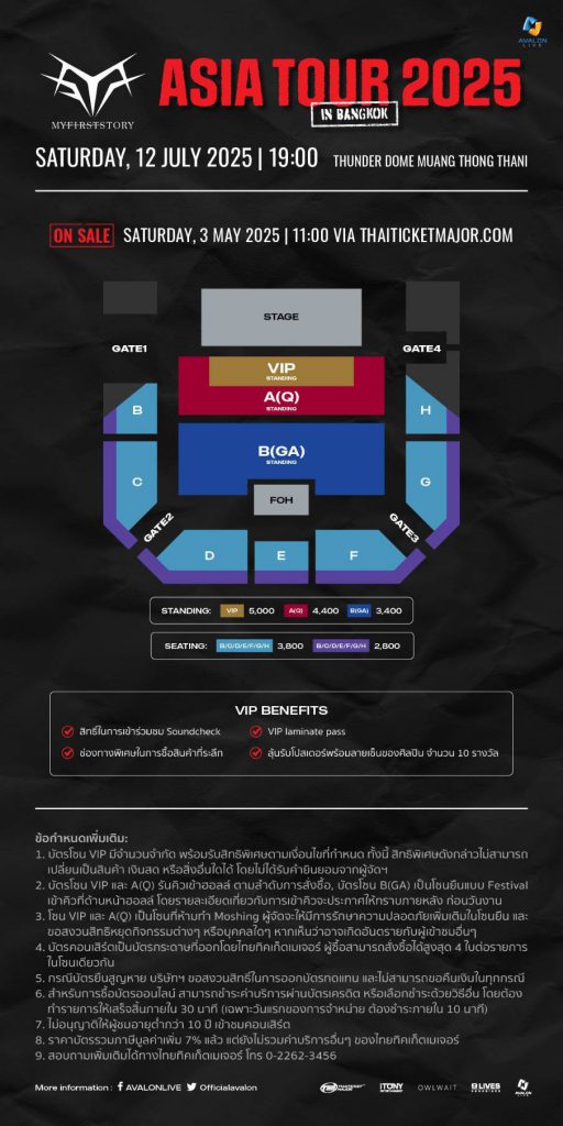 🎟 ข่าวดีสำหรับแฟนๆ ชาวไทย! MY FIRST STORY ASIA TOUR 2025 IN BANGKOK จะเปิดจำหน่ายบัตรวันเสาร์ที่ 3 พฤษภาคม 2568 เวลา 11.00 น ทาง www.thaiticketmajor.com โดย Avalon Live ผู้จัดสายเจมือหนึ่ง ติดตามข่าวสารเพิ่มเติมและโปรเจกต์ดีๆ จาก Avalon Live ได้ที่: