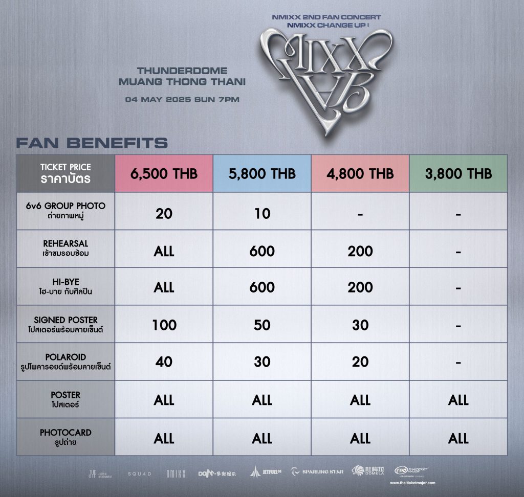 จัดให้แบบเต็มอิ่ม NMIXX เกิร์ลกรุ๊ปแถวหน้าที่น่าจับตามองในขณะนี้ และ JetFuel ผู้จัดสุดปัง พร้อมมอบสิทธิพิเศษให้กับแฟน ๆ ชาวไทยได้ใกล้ชิดสาว ๆ มากขึ้น ไม่ว่าจะเป็นสิทธิ Rehearsal / Hi-Bye / Singed Poster / Polaroid เดิมที่มีอยู่แล้ว แต่งานนี้ขอเพิ่มจำนวนมากขึ้นกว่าเดิม และที่ปังไม่ไหว และจัดกันให้อย่างเซอร์ไพรส์ นั้นก็คือ ผู้ที่ซื้อบัตร 6,500 และ 5,800 บาท จะได้ร่วมลุ้นเป็น 30 คนที่ได้ถ่ายรูปกับสาวๆ ทั้ง 6 แบบ EXCLUSIVE !!!