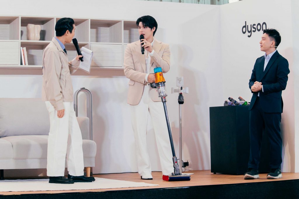 ภายในงาน สกาย วงศ์รวี หยิบ Dyson V12s Detect Slim SubmarineTM Complete โชว์สเต็ปการทำความสะอาดทั้งแบบแห้งและเปียกด้วยเครื่องเดียว ทั้งการดูดฝุ่นที่มีตัวช่วยอย่างเลเซอร์สีเขียวจากหัวดูดทำความสะอาด Fluffy OpticTM เผยฝุ่นละเอียดที่มองเห็นได้ยาก หรือสำหรับพ่อแม่น้องหมาน้องแมวที่ขนฟุ้งเต็มบ้าน สกายก็สาธิตการจัดการด้วยหัวดูดเก็บเส้นผม ปิดจบด้วยหัวดูดลูกกลิ้งเปียก SubmarineTM ที่สามารถถูพื้น และจัดการกับคราบของเหลวได้ง่ายดาย ยกระดับความสะอาดไปสู่ขั้นสุด เอาใจคนไทยที่พื้นบ้านต้องสะอาดแบบเดินเท้าเปล่าได้อย่างสบายใจ