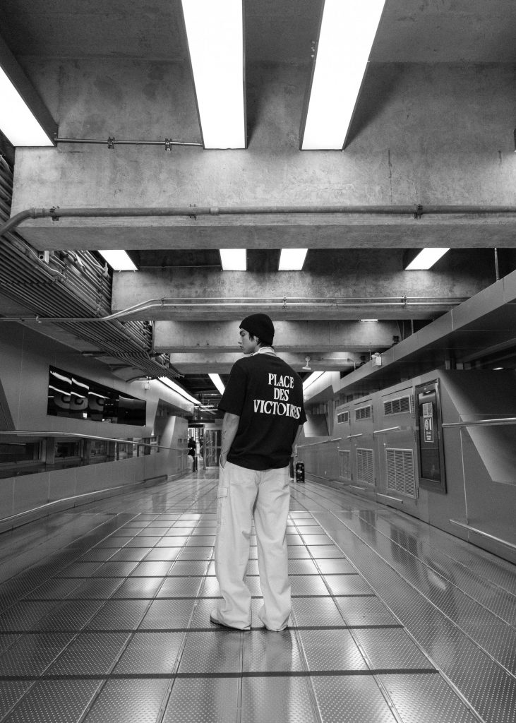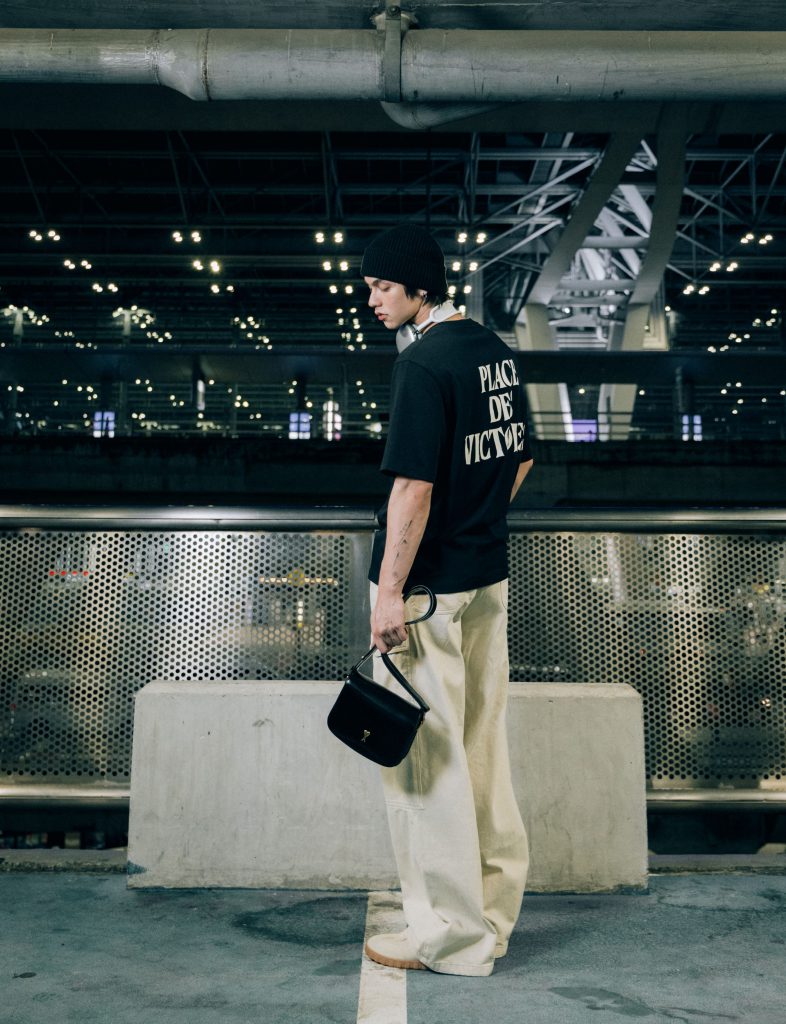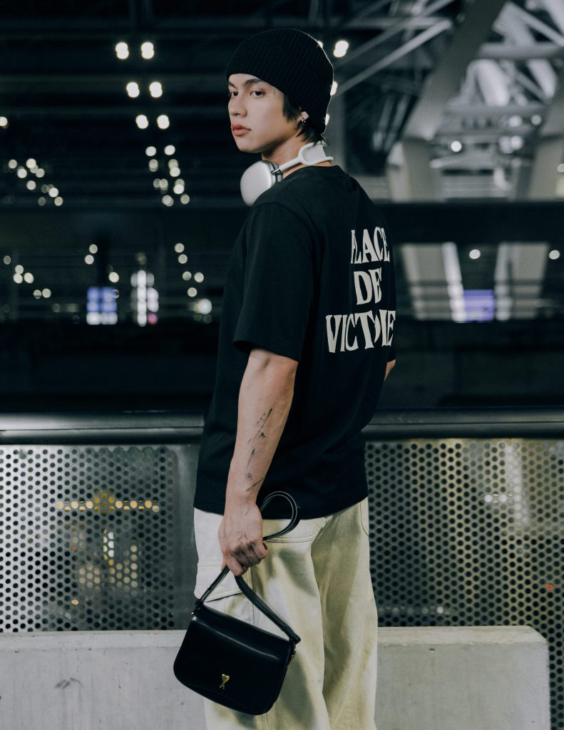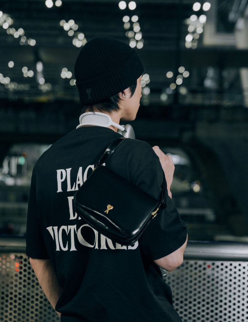สำหรับลุคนี้ “ไบร์ท วชิรวิชญ์” ได้สวมเสื้อทีเชิ้ตสกรีนด้านหลังด้วยคำว่า “Place des Victoires”  ซึ่งสื่อความหมายถึง จตุรัสสำคัญใจกลางกรุงปารีส อันเป็นตำแหน่งของโชว์ฤดูใบไม้ผลิ-ฤดูร้อน 2026 ที่กำลังจะเกิดขึ้นในครั้งนี้!! เรียกได้ว่านี่เป็นครั้งแรก และ “ไบร์ท” เป็นคนแรกที่ได้ทำการเฉลยหมุดหมายของโชว์สุดพิเศษนี้ และเขายังเลือกสวมกางเกงวูลกาบาร์ดีนทรงคาร์โก กับหมวกบีนนี่ AMI de Coeur ใบโปรด และ คอมพลีทลุคด้วยสนีกเกอร์ทรงโลว์ท็อป กับกระเป๋ารุ่น Paris Paris กระเป๋าไอคอนิกของ AMI Paris หนึ่งในคอลเลกชันจากฤดูกาลใบไม้ร่วง 2025