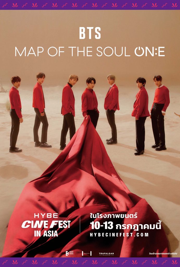 เริ่มต้นที่ “BTS MAP OF THE SOUL ON:E” ภาพยนตร์บันทึกคอนเสิร์ตจากวงบอยกรุ๊ประดับโลก จัดเต็มกว่า 2 ชั่วโมง กับเซ็ตลิสต์ที่ขนมาอย่างเต็มอิ่ม 24 เพลงจากอัลบั้ม Map of the Soul: 7 และเพลงใหม่สุดฮิตอย่าง Dynamite บน 4 เวทีใหญ่ที่ทุ่มงบโปรดักชั่นมากกว่าคอนเสิร์ต BANG BANG CON ถึง 8 เท่า พร้อมด้วยเทคโนโลยีที่สร้างความน่าตื่นตาตื่นใจอย่าง AR และ XR