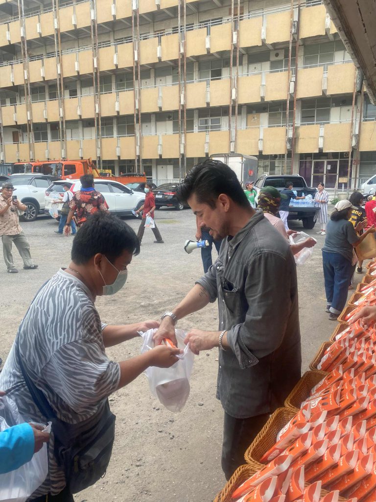 ทุกพื้นที่คนไทยไม่เคยทิ้งกัน แม้ช่วงนี้จะอยู่ในสถานการณ์เปราะบาง วิกฤตคนไทยต้องเผชิญทั้งน้ำท่วม จังหวัดน่าน และ การอพยศหลบภัยของคนไทยในตะเข็บชายแดน แต่จุดศูนย์กลางของเมืองหลวงยังคงต้องขับเคลื่อนต่อสู้กับการเป็นอยู่วันต่อวัน ล่าสุดพระเอกตัวจริง “หนุ่มอ้น สราวุธ” เจ้าพ่อดาวTikTok ขออาสาลงพื้นที่เติมพลังแรงใจ มอบน้ำใจให้กับพี่น้องกลางกรุงฯ ณ ชุมชน บริเวณประปาแม้นศรี (หลังเก่า) ย่านเขตป้อมปราบศัตรูพ่าย กรุงเทพฯ เลี้ยงข้าวคนไร้บ้านยากไร้ และผู้สูงอายุ ร่วมไปถึงคนลำบาก ตกงาน และผู้พิการ ที่ระดุมทุนรายได้จากการขายสินค้าปักตะกร้าของตัวเอง แบ่งปันมาเป็นทุนทรัพย์ซัพพอร์ตช่วยเหลือเต็มเติมพลังน้ำใจ ร่วมด้วย คุณวิสุทธิ พรศาลนุวัฒน์ ผู้บริหารบริษัท เอ็นเอสแอล ฟู้ดส์ จำกัด (มหาชน) และทีมงาน deepcare ร่วมเป็นอาหารและเครื่องดื่ม รวมทั้งข้าวแท่ง ให้แก่ผู้ยากไร้และคนไร้บ้านมากกว่า 1,000 คน ที่ขาดแคลน