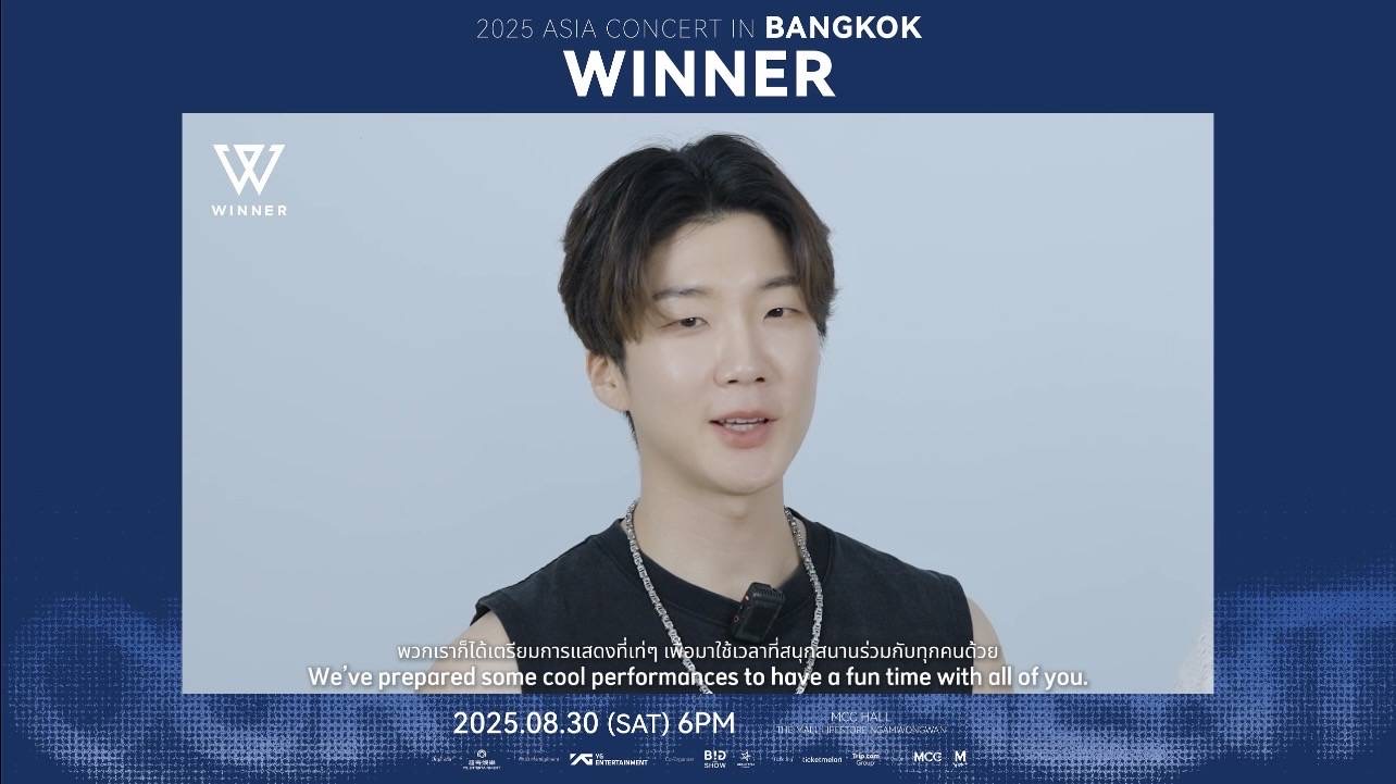 หนุ่ม ๆ ก็ไม่พลาดที่ส่งข้อความถึงแฟนๆ ให้มาสนุกกับพวกเขาในงาน WINNER [OUR MOMENT] 2025 CONCERT IN BANGKOK ทั้งหนุ่มซึงยุน , จินอู , ซึงฮุน กล่าวว่า “สวัสดีครับ พวกเรา WINNER ครับ ผมซึงยุนครับ ผมจินอูครับ ผมซึงฮุนครับ INNER CIRCLE ทุกคนสบายดีกันมั้ยครับ หลังจากที่ไม่เจอกันนานเลย พวกเราจะได้ไปหาทุกคนที่ไทยกับงาน WINNER [OUR MOMENT] 2025 CONCERT IN BANGKOK แล้วครับ พวกเราก็ได้เตรียมการแสดงที่เท่ๆ เพื่อมาใช้เวลาที่สนุกสนานร่วมกับทุกคนด้วย แล้วมาสนุกกันกับพวกเรานะครับ พวกเราจะรออยู่ที่ MCC Hall เดอะมอลล์งามวงศ์วาน กรุงเทพ ในวันที่ 30 สิงหาคมนี้ครับ แล้วเจอกันนะครับ”