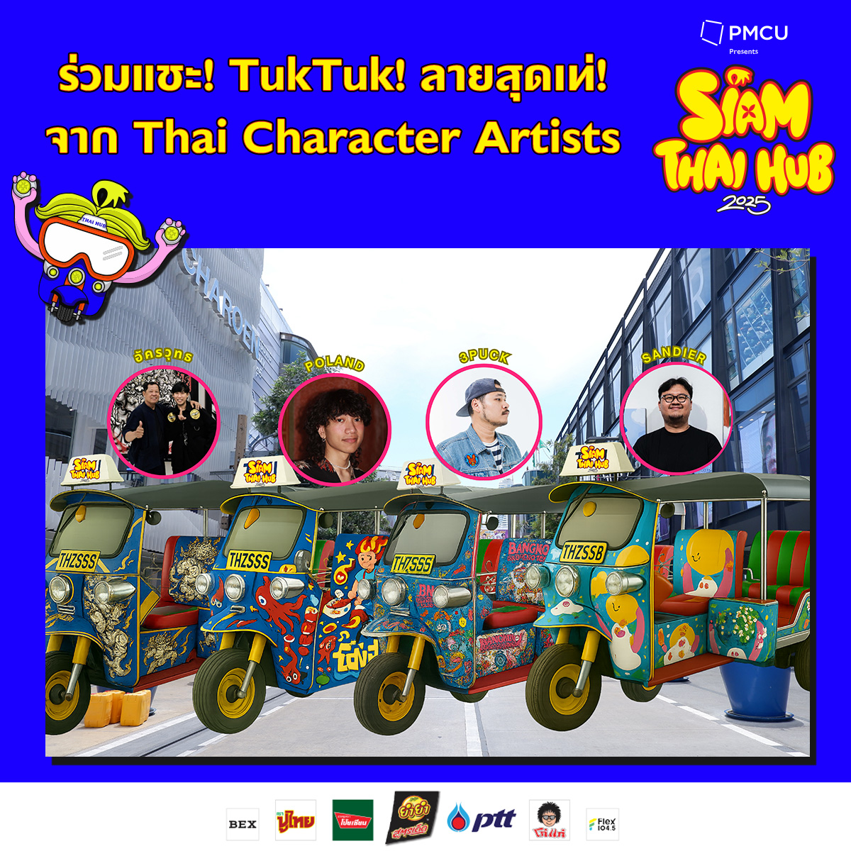 PMCU (สำนักงานจัดการทรัพย์สินจุฬาลงกรณ์มหาวิทยาลัย) ร่วมกับ BEX จัดงาน “PMCU Presents Siam Thai Hub 2025” เทศกาลฮับ (Hub) แห่งวัฒนธรรมไทยสร้างสรรค์ที่ยิ่งใหญ่แห่งปี! รวมทุกพลังสร้างสรรค์ วัฒนธรรมไทยหลากหลายสไตล์ร่วมสมัย Soft Power Sandbox สร้างพื้นที่รวมพลังสร้างสรรค์ไทย เปิดเวทีและพื้นที่ให้คนรุ่นใหม่ ดีไซเนอร์, ศิลปิน, นักแสดง, เชฟ และนักสร้างสรรค์ทุกแขนง ได้แสดงศักยภาพและโชว์ความเป็น Thainess Fever กระตุ้นให้เกิดเทรนด์ และกระแสการนำอัตลักษณ์ความเป็นฮับ (Hub) ของไทย เพื่อส่งเสริมการท่องเที่ยวให้มีชื่อเสียงดังไปทั่วโลก พร้อมเชื่อมโยงเครือข่ายคนรุ่นใหม่กับผู้เชี่ยวชาญในแต่ละ ฮับ (Hub) เพื่อถ่ายทอดและแลกเปลี่ยนองค์ความรู้ในด้านต่าง ๆ